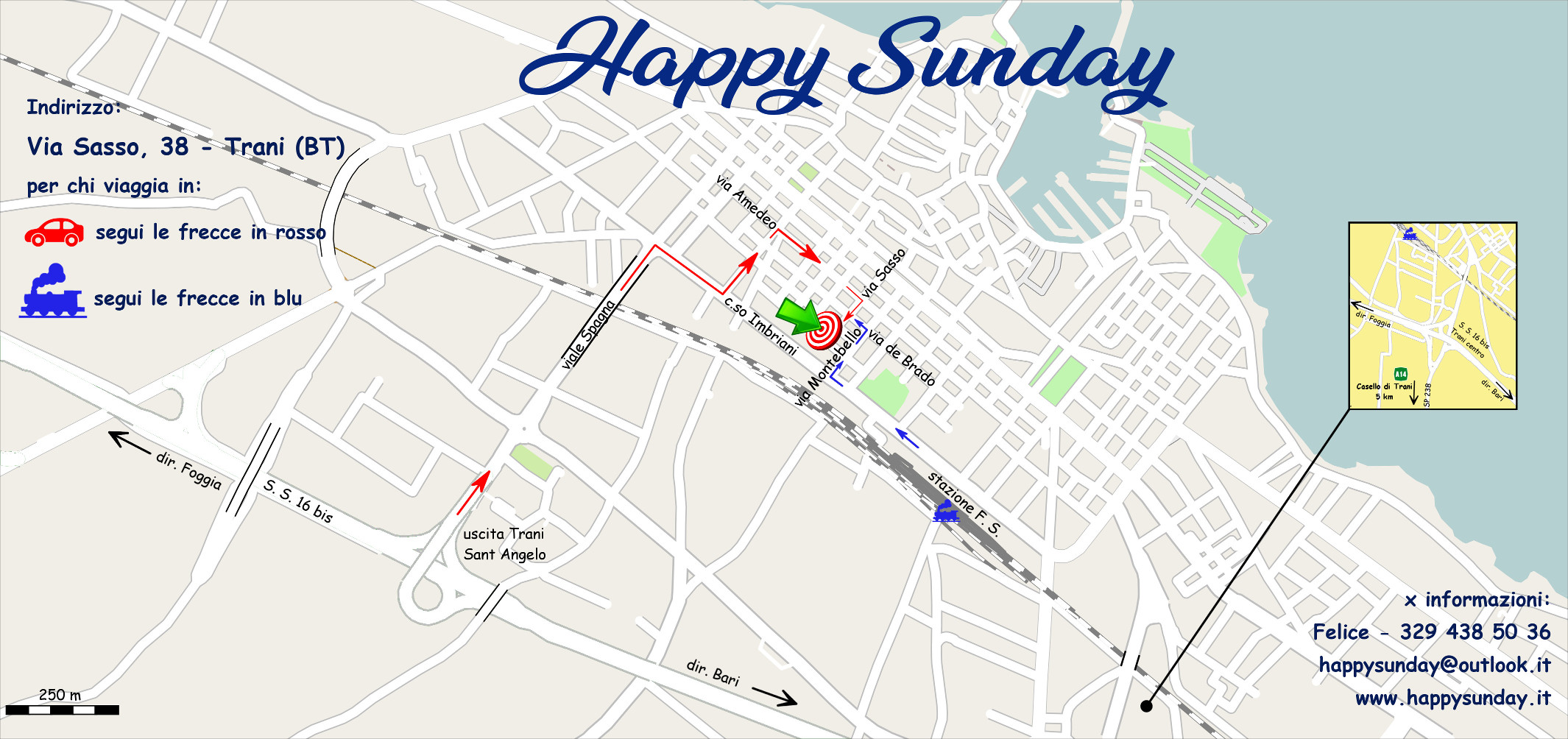 La struttura è situata al civico 38 di via Sasso, nel pieno centro della città di Trani, nei pressi di piazza Garibaldi e della chiesa di San Michele.
